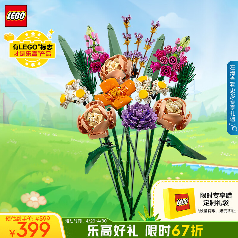 乐高(LEGO)积木拼装10280 乐高花束玫瑰手捧花男孩女孩玩具生日礼物送女友价格:449.00元!