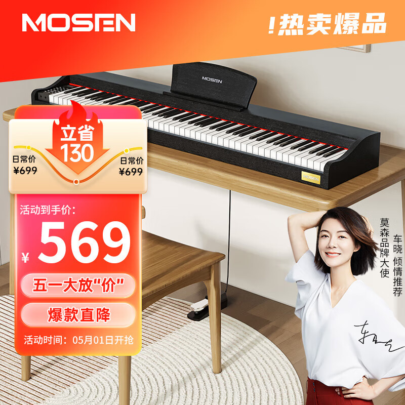 莫森(MOSEN)MS-100S电钢琴 青春系列 88键重力度键盘电子数码钢琴 典雅黑价格:599.00元!