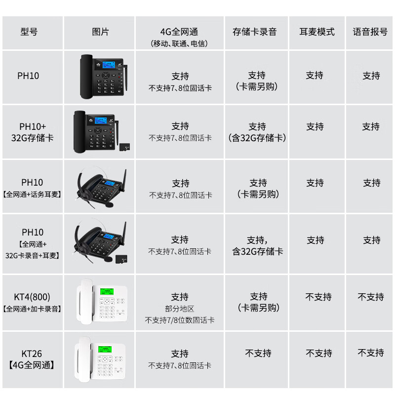 亿家通 通无线插卡录音电话机 KT4(800) 移动联通电信4G网移动固话办公家用电销座机价格:298.00元!