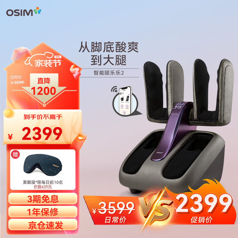 傲胜(OSIM)足疗机腿乐乐 智能足部按摩仪升级腿部推拿温热按摩脚机OS-393 uSqueez2 Smart 深灰色价格:2759.00元!