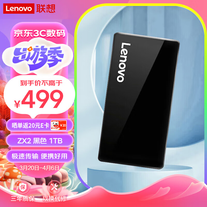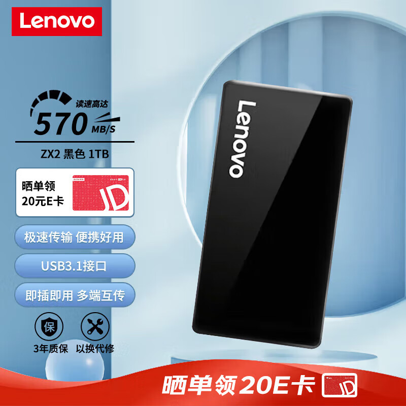 联想(Lenovo)1TB 移动固态硬盘(PSSD)Type-c USB3.1接口 手机直连 ZX2系列 黑色价格:499.00元!