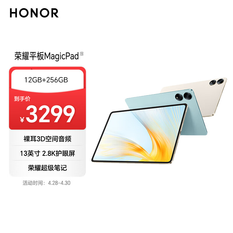 荣耀MagicPad 13英寸平板电脑(12+256GB 2.8K超清 144Hz高刷巨屏 专业级8扬声器 10050mAh)天青色价格:3099.00元!