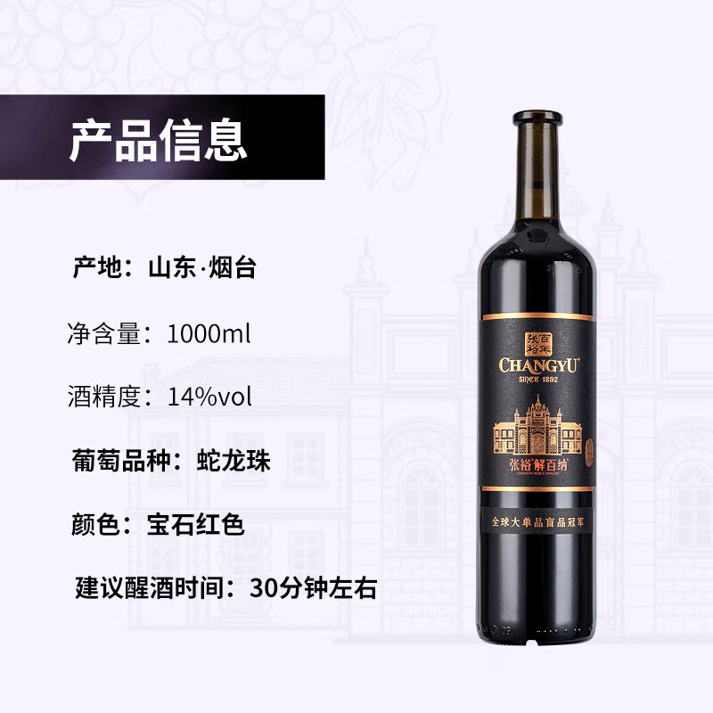 今天要给大家分享的是张裕葡萄酒满意的,价格也很合理的。这个商品的外观设计非常吸引人,给人一种高级感。