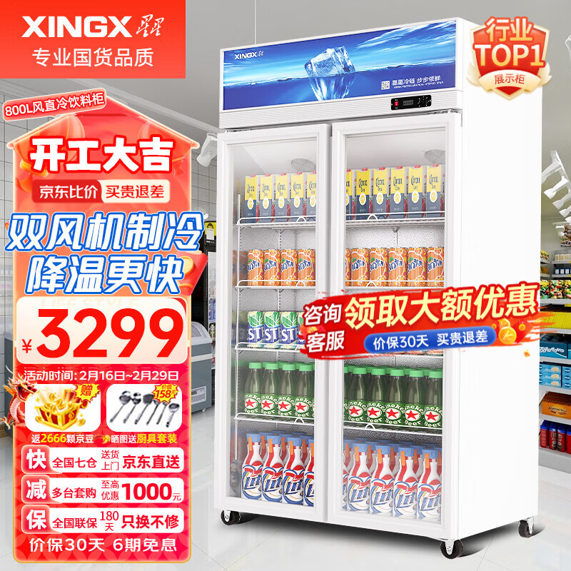 星星(XINGX)展示柜冷藏保鲜柜双开门立式冰柜饮料柜 商用冰箱风直冷超市便利店水果啤酒冷柜 800升 双风机循环制冷 LSC-818Y价格:3299.00元!