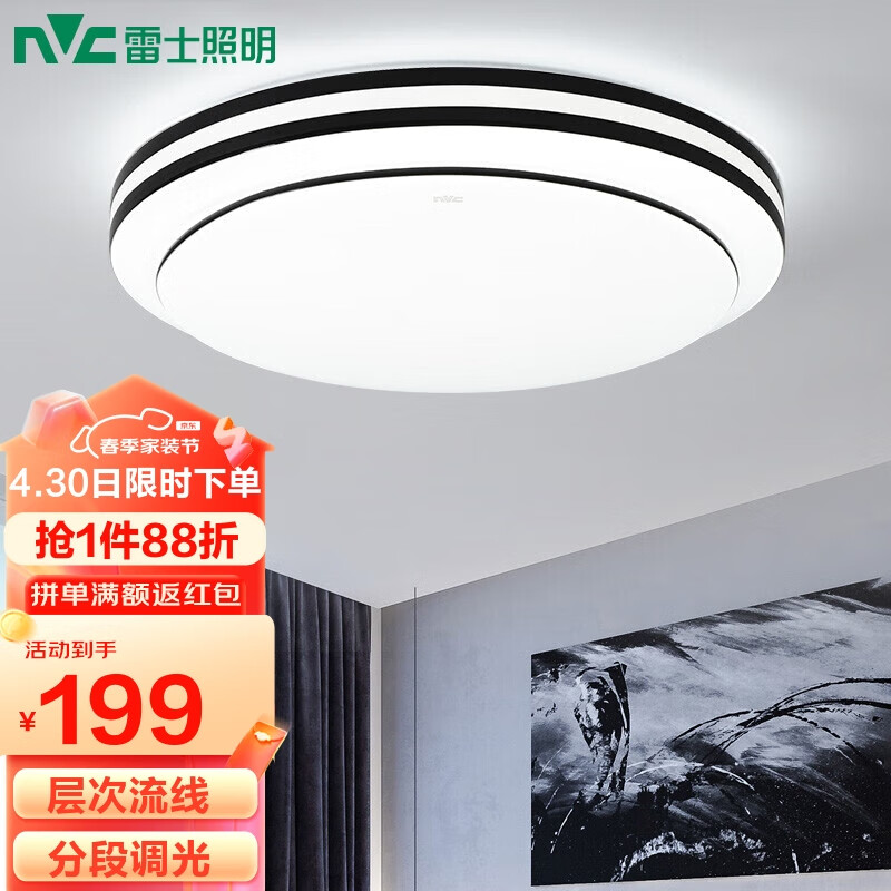 雷士(NVC)LED吸顶灯 双层发光灯饰照明现代简约卧室书房阳台灯具圆灯价格:199.00元!