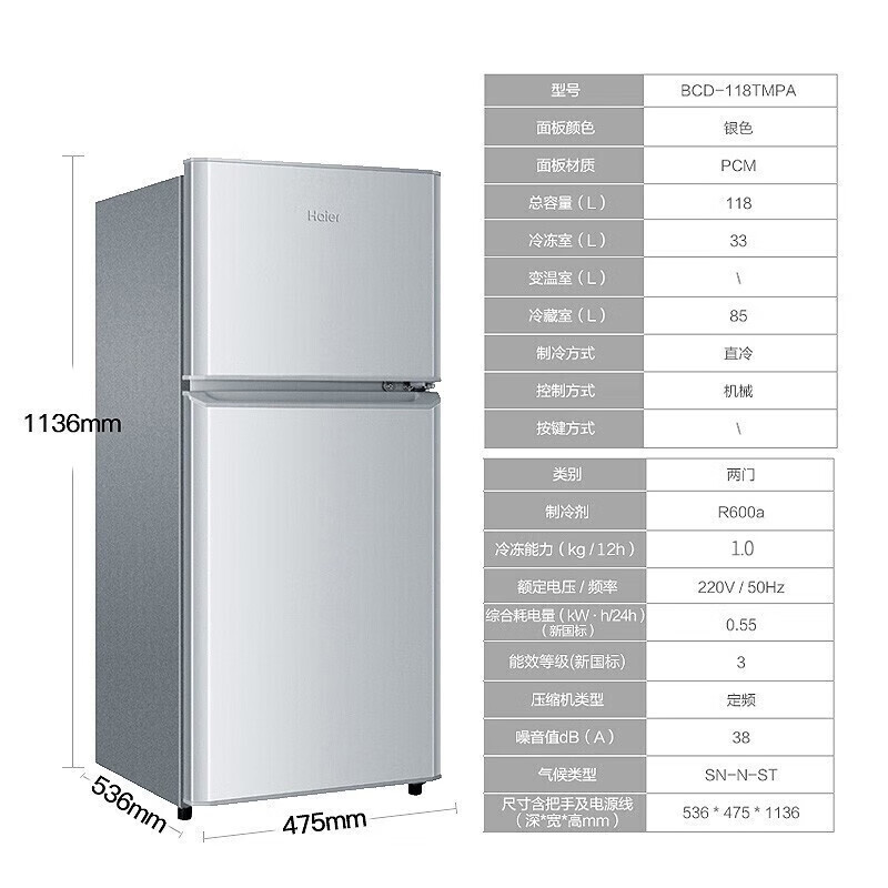 商品名称:海尔BCD-118TMPA