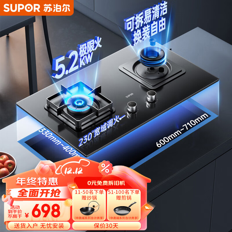 苏泊尔(SUPOR)燃气灶双灶家用 液化气双灶具5.2kW火力 可调节底盘 63%热效率 230°宽域控火燃气灶具 DB28液价格:698.00元!