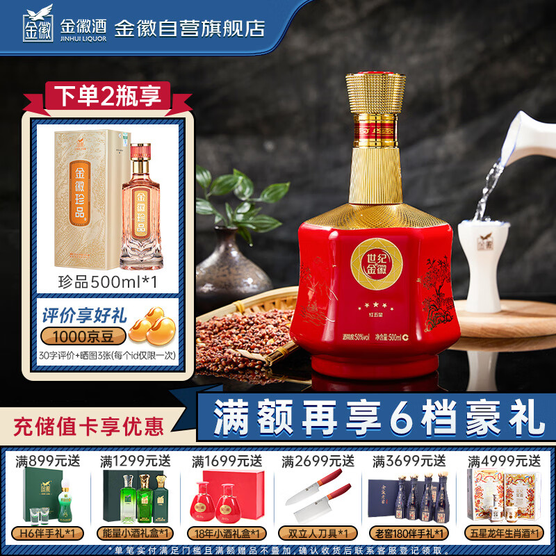 金徽 世纪金徽红五星 浓香型白酒 50度 500ml 单瓶装价格:328.00元!