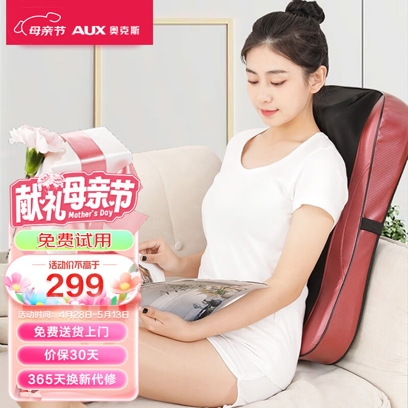 奥克斯(AUX) 颈椎按摩器按摩仪背部腰部按摩垫全身肩颈部多功能家用揉捏按摩枕靠垫躺垫JX006 母亲节礼物价格:319.00元!