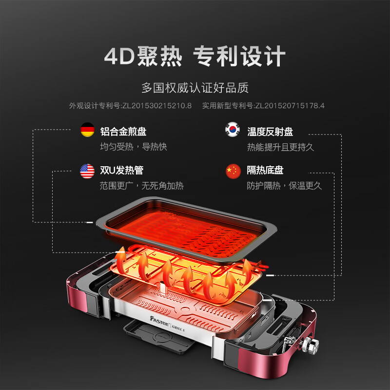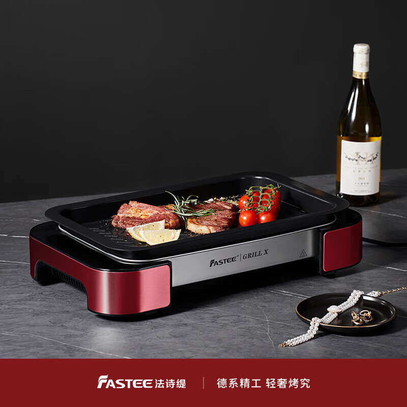 法诗缇(Fastee)烤肉锅家用无烟电烤盘电烧烤炉不粘多功能铁板烧煎蛋烙饼牛排海鲜电煎盘 FST-53A 红色 1层 拉菲红-轻油无烟煎烤盘价格:499.00元!