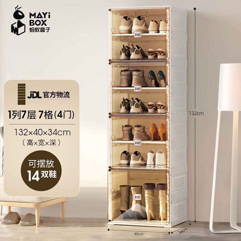 蚂蚁盒子(MAYIHEZI)免安装简易鞋柜门口家用玄关折叠透明茶色塑料超薄鞋柜 1列7层7格价格:379.00元!
