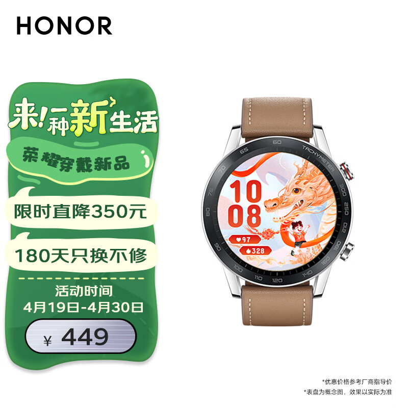 荣耀手表GS 3i 亚麻棕 运动智能手表 血氧检测 14天长续航 100种运动模式 蓝牙通话 龙年表盘新年礼物价格:449.00元!