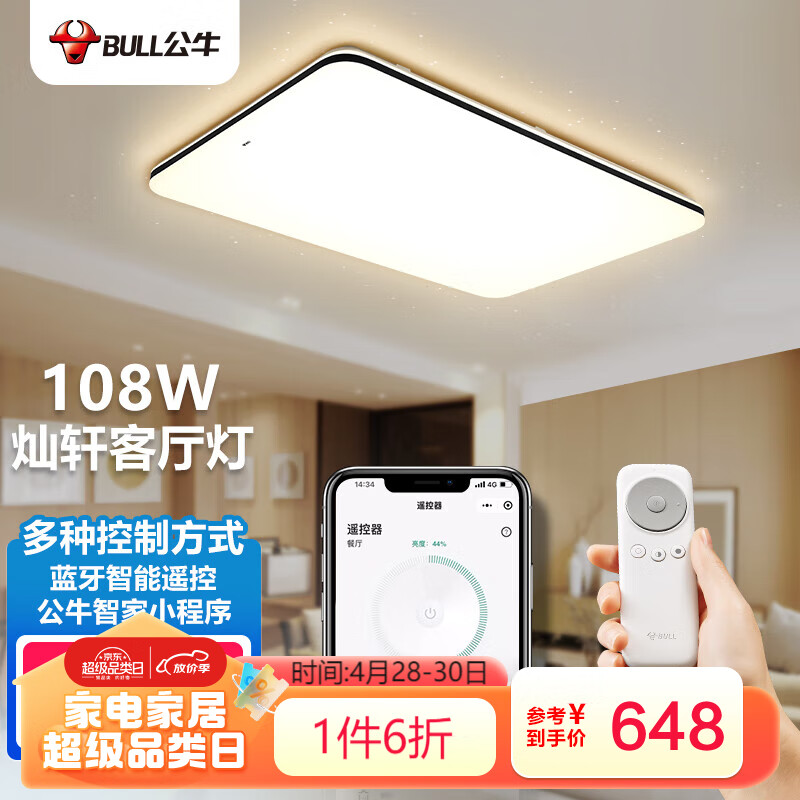 公牛(BULL)LED吸顶灯蓝牙遥控小程序MX-C108T-CD灿轩智能客厅灯卧室灯108W价格:1080.00元!