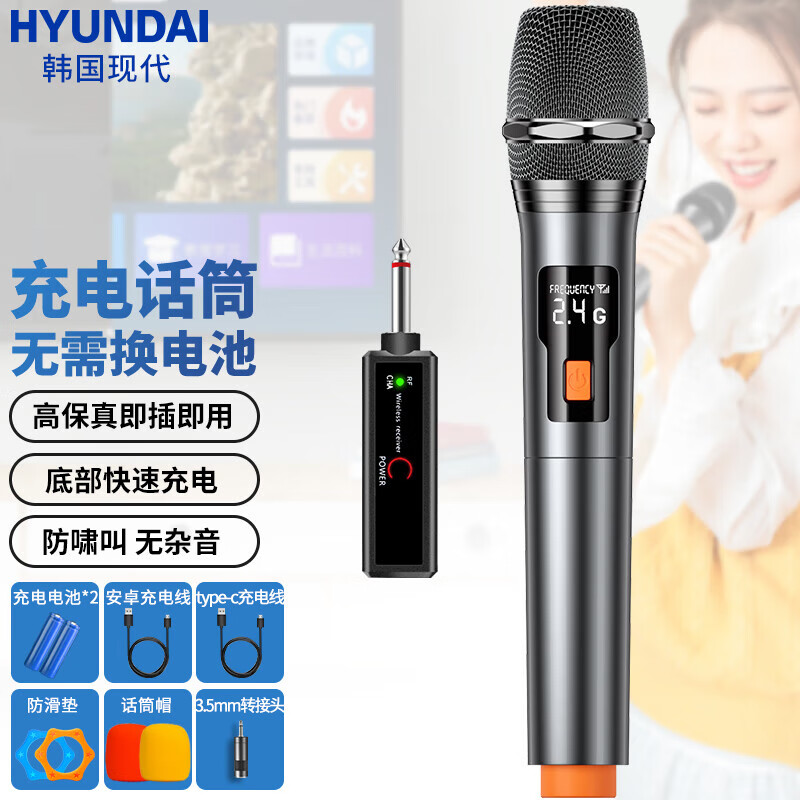 HYUNDAI现代 XW10 可充电锂电池多组可用无线麦克风专业K歌麦克风家庭KTV演唱会议主持专业话筒价格:79.90元!