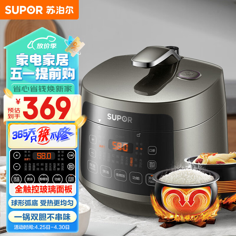 苏泊尔(SUPOR)电锅3L家用触控玻璃10种烹饪菜单智能预约双胆球釜一键排气低温烹饪SY-30FC8058QS价格:315.00元!