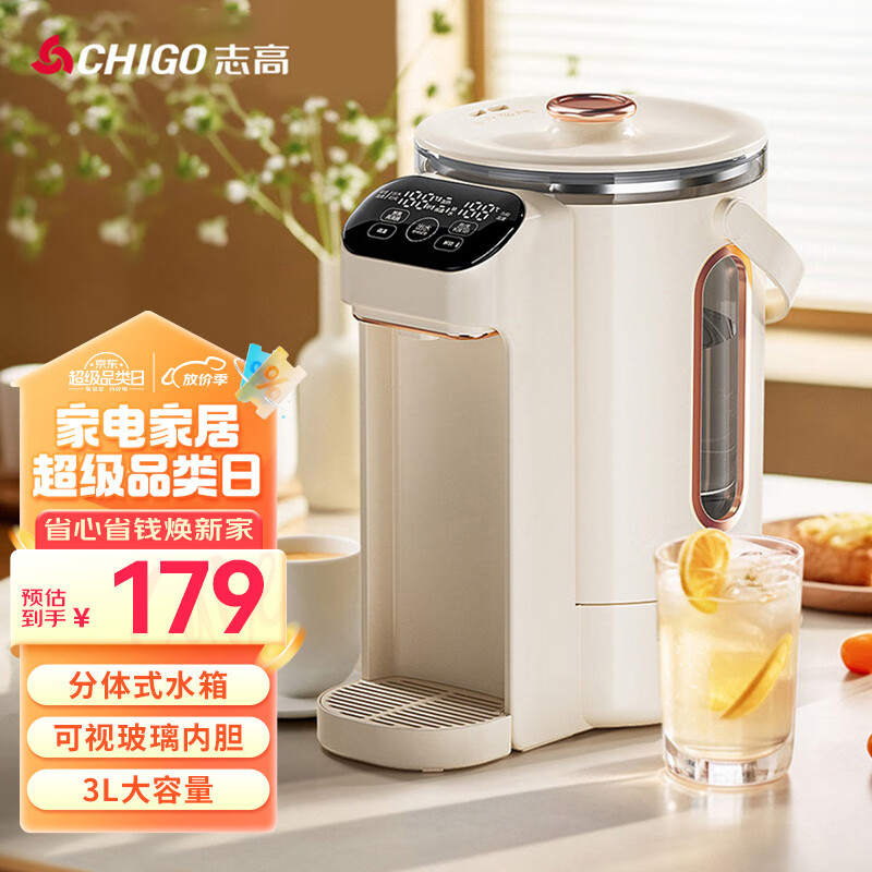 志高(CHIGO)电热水壶烧水壶电热水瓶烧水壶保温一体全自动恒温电热水壶3L大容量恒温水壶除氯多段保温DC-P831价格:179.00元!