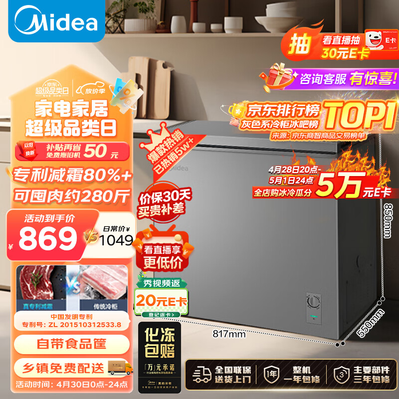 美的(Midea)200升 减霜家用囤货小冷柜 冷藏冷冻转换冰柜 一级能效母婴母乳小冰箱 BD/BC-200KMF(E)以旧换新价格:919.00元!