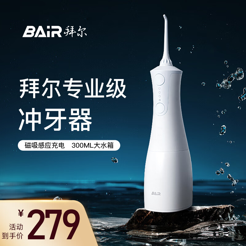 拜尔M301 电动冲牙器 手持式专业水牙线家用声波式去除超正畸专用牙齿清洁洗牙神器男 送女朋友 专业白价格:289.00元!