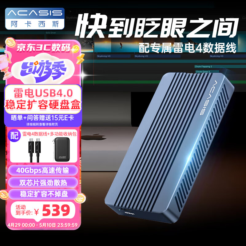 阿卡西斯USB4.0硬盘盒NVMe M.2移动40Gbps固态硬盘盒Type-c笔记本雷电3台式机电脑SSD固态外置硬盘盒价格:598.89元!