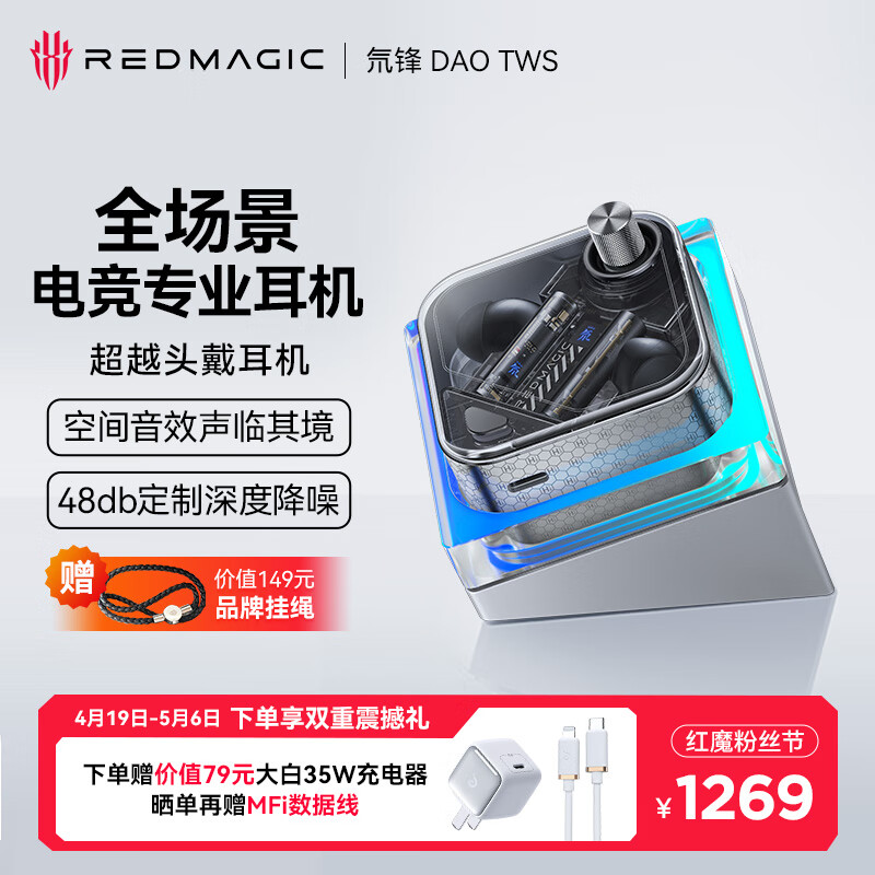 努比亚红魔氘锋DAO TWS全场景电竞耳机 手游端游笔记本电脑手机蓝牙5.3双模主动降噪低延迟价格:1269.00元!