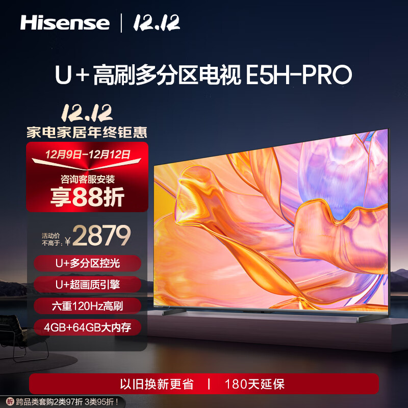 海信电视55E5H-PRO 55英寸 多分区控光 120Hz高刷 4K高清 智慧屏 液晶智能平板电视机价格:2999.00元!