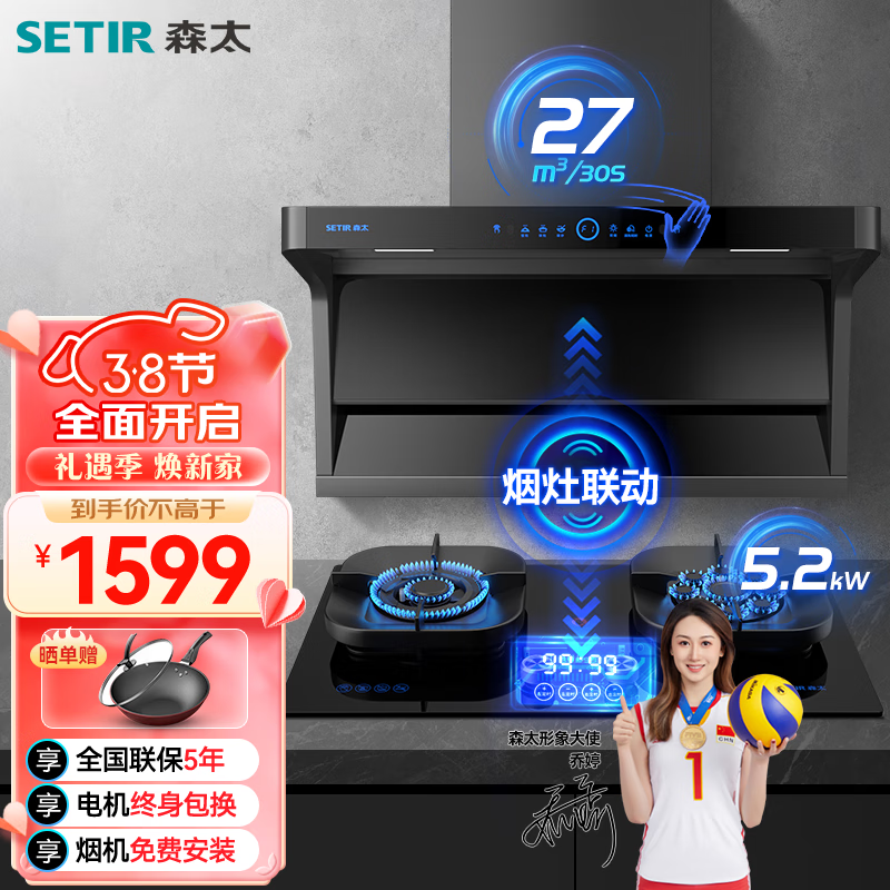 森太(SETIR)抽油烟机烟灶套装 顶侧双吸800宽小尺寸大吸力油烟机灶具套装 鸳鸯焰定时天然气灶 B822Q+TM81价格:1799.00元!