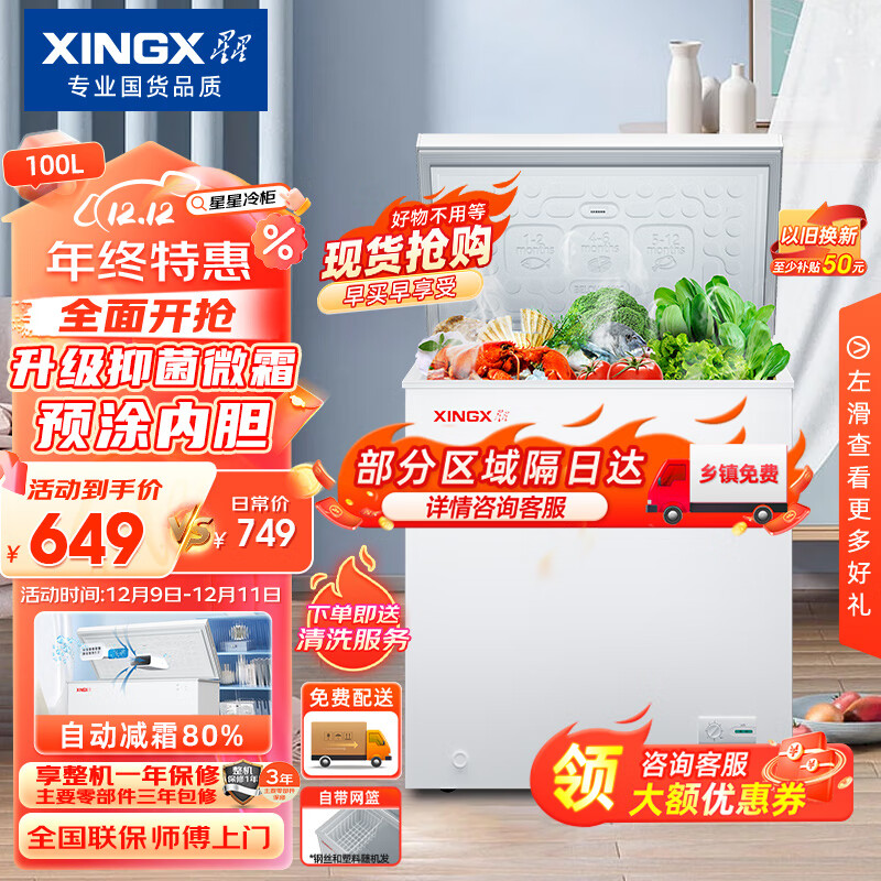 星星(XINGX)100升家用商用减霜净味冰柜 冷藏冷冻转换冷柜 节能顶开冰箱 BD/BC-100QJ价格:699.00元!