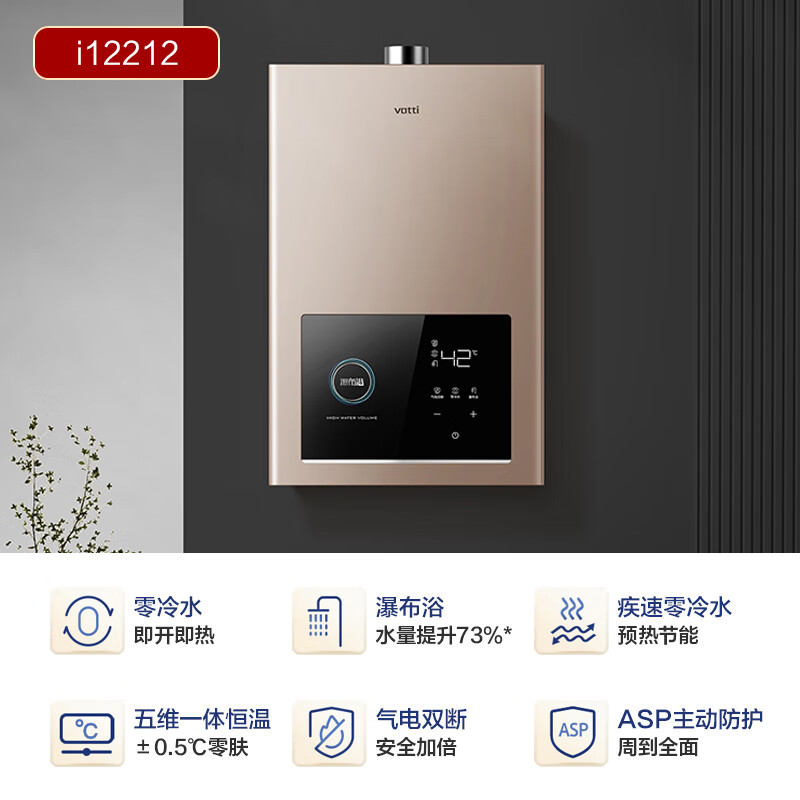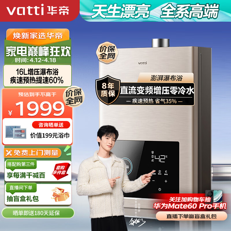 华帝(VATTI)16升燃气热水器天然气家用恒温即热式零冷水增压瀑布浴气电双断节能省气智能恒温 i12212-16价格:1999.00元!