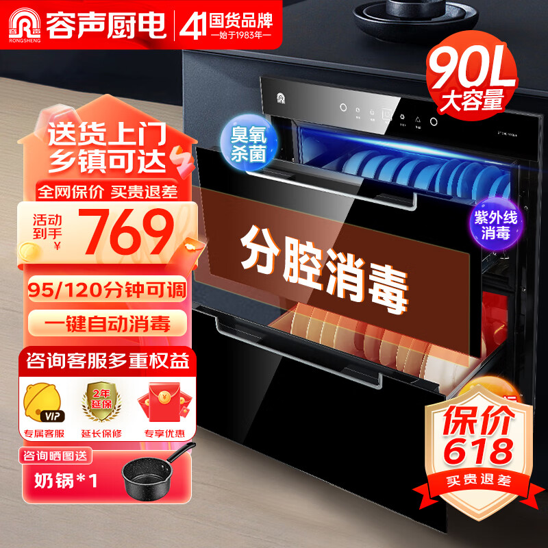 容声(RONGSHENG)消毒柜家用 嵌入式 消毒碗柜 家用碗筷餐具消毒90L大容量RX02E价格:769.00元!