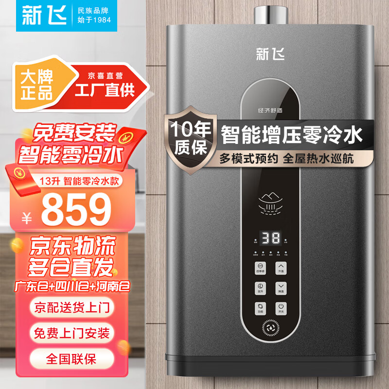 新飞13升 智能零冷水燃气热水器天然气增压强排热水器 预约模式 热水巡航 即开即热 低水压启动价格:859.00元!