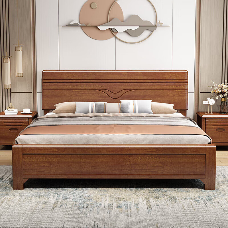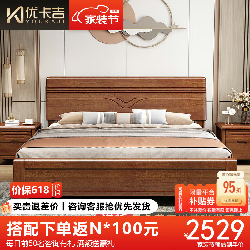 优卡吉胡桃木实木床新中式双人1.8米储物家668# 1.8箱框床+床垫+柜*2价格:3189.00元!
