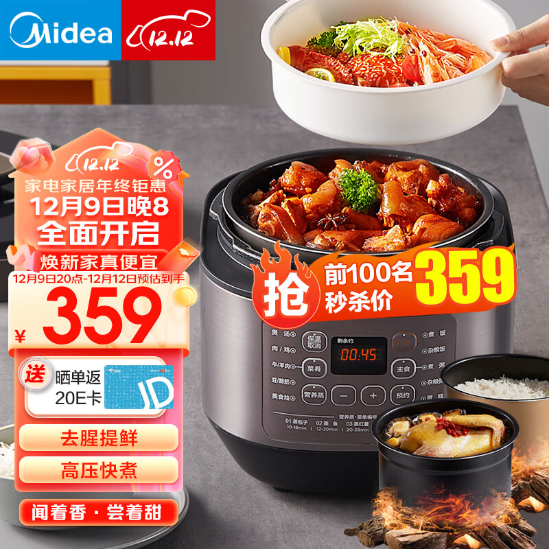 美的(Midea) 电锅 高压锅 家用智能电高压锅电饭煲双胆高压锅高压煮汤锅电饭锅 6升 巧鲜阀排气丨60M5-206(5-12人)价格:459.00元!