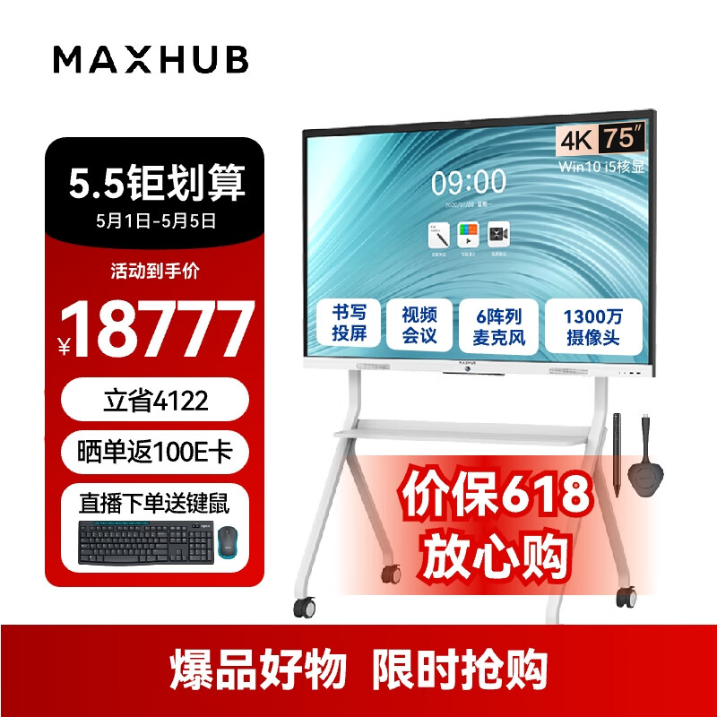 maxhub视频会议平板一体机直播展示触控书写投屏内置摄像头麦克风新锐Pro75 Win10+时尚支架+传屏+笔价格:21657.00元!