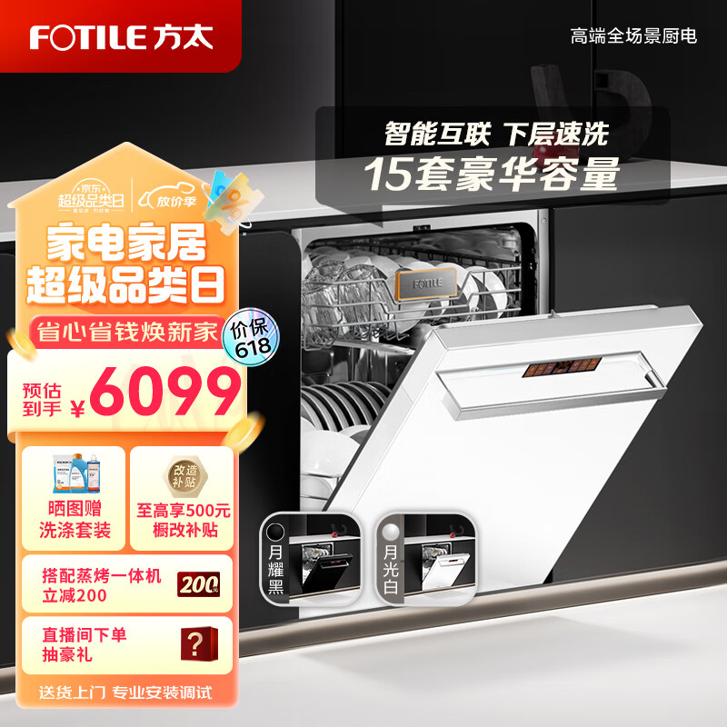 方太(FOTILE)洗碗机嵌入式家用高能气泡洗 15套大容量锅碗一次洗 智能互联 下层速洗 劲洗魔方B-VF1.i(白)价格:6099.00元!