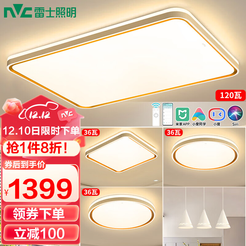 雷士(NVC)LED吸顶灯 现代简约客厅卧室餐厅灯饰 智能AI语音WHXD120W/F-03价格:1873.00元!