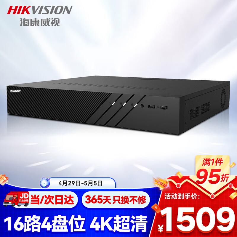 HIKVISION海康威视网络监控硬盘录像机16路4盘4K高清NVR支持H.265编码兼容10T硬盘DS-7916N-R4价格:1620.00元!