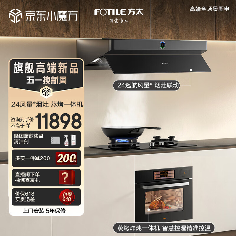 方太(FOTILE)烟灶蒸烤三件套24巡航风量全新形态欧式油烟机套装烟灶联动蒸烤箱套装01-F2.i+THF1-G+EF1.i价格:11898.00元!