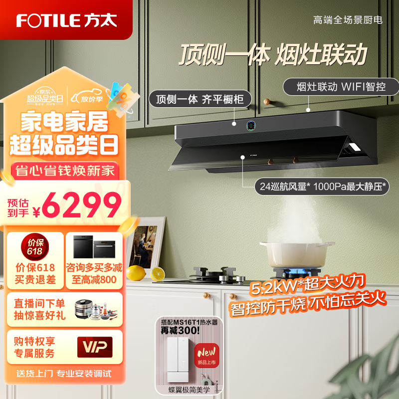 方太(FOTILE)F2抽吸油烟机灶具套装 顶侧一体欧式侧吸 联动24巡航风量防干烧烟灶套餐01-F2.i+01-THK21B天然气价格:6299.00元!