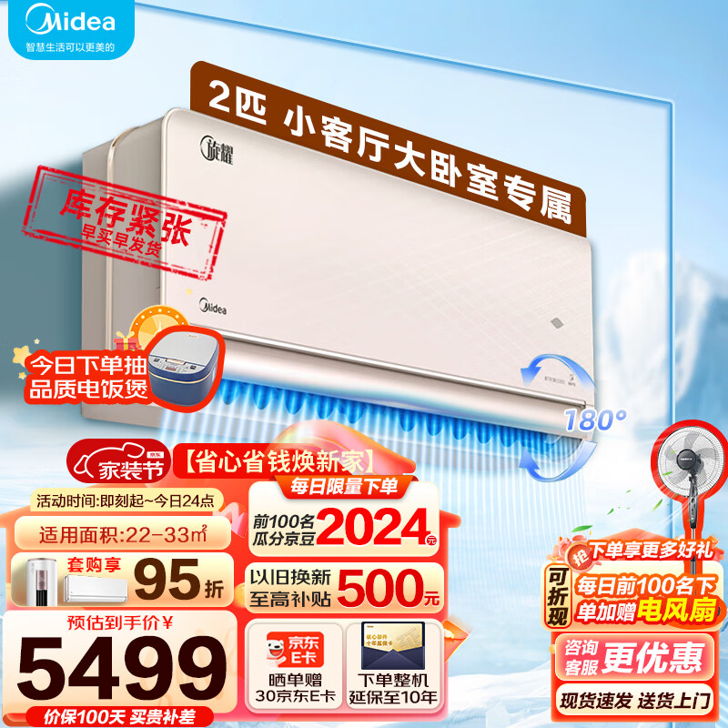 美的(Midea)空调 2匹旋耀 壁挂式空调 大风量客厅商铺挂机 一级能效空调 KFR-50GW/N8MXA1价格:5499.00元!