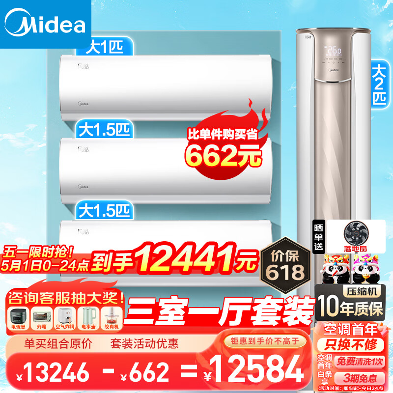美的(Midea)空调套装三室一厅套餐一套购齐 新一级能效变频挂机柜机 2匹锐静+风酷/极酷/冷静星/酷省电/青春价格:12441.00元!