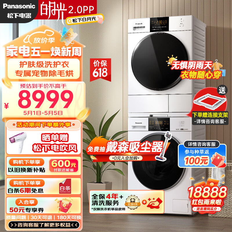 松下(Panasonic)白月光2.0PP 升级护理版 10+10洗烘套装 变频压缩机 光动银除菌 泡沫净 宠物除毛烘 3E1AK+82QR1价格:9499.00元!
