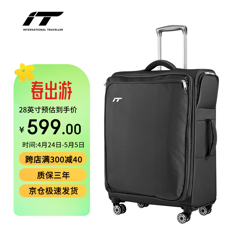 INTERNATIonAL TRAVELLER英国IT拉杆箱托运旅行箱万向轮超轻行李箱28英寸牛津布软箱1157黑价格:699.00元!