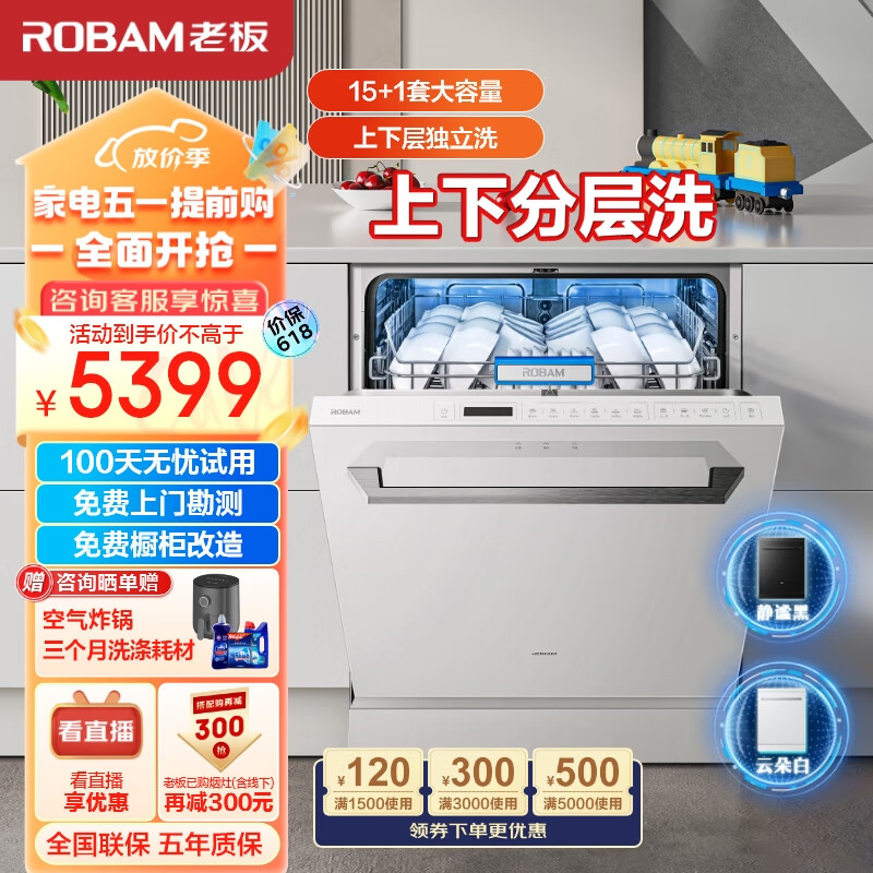 老板(Robam)F80D白15+1套大容量嵌入式去重油污洗碗机热风烘干消毒168h长效存储一体机家用独立式分层洗价格:5399.00元!