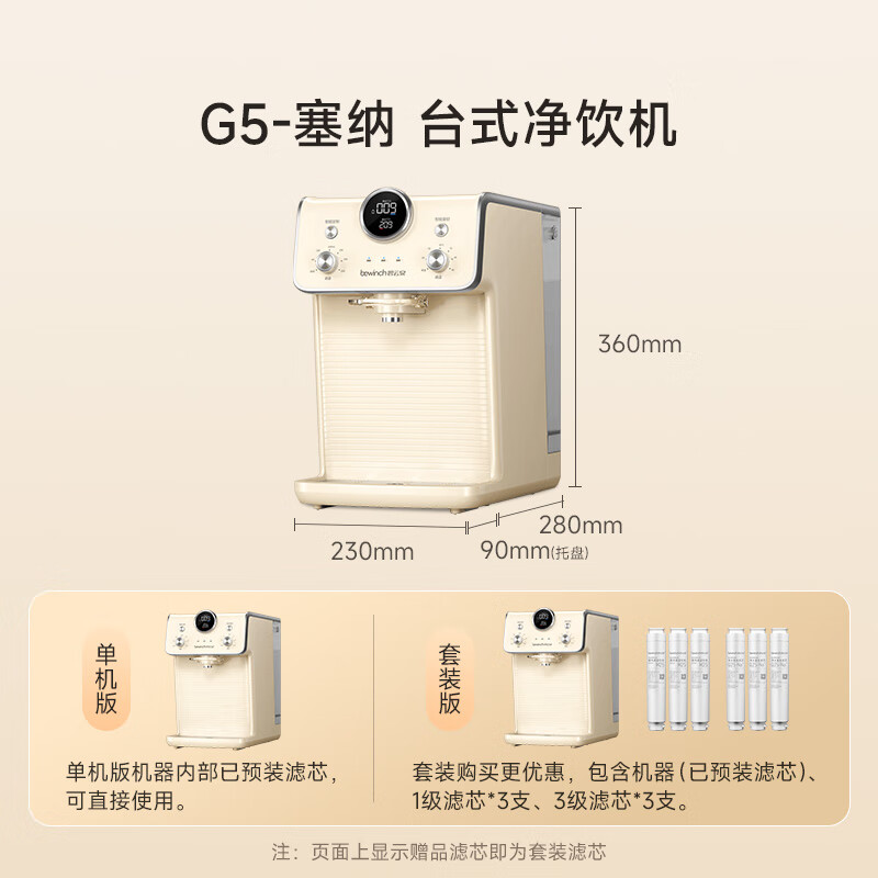 碧云泉G5低钠含锌净水器饮水机家用台式母婴冲奶粉宝宝反渗透净饮一体机加速热杀菌智能家用恒温暖水淡矿 G5-塞纳:套装版价格:4999.00元!