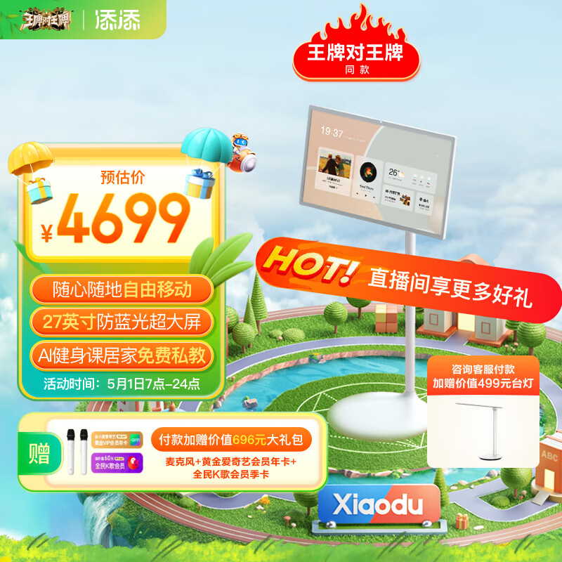 添添小度闺蜜机公开版 智能平板 电视音响 移动随心屏27英寸大屏触控显示器 追剧唱歌健身办公学习礼物价格:4699.00元!
