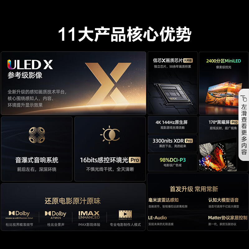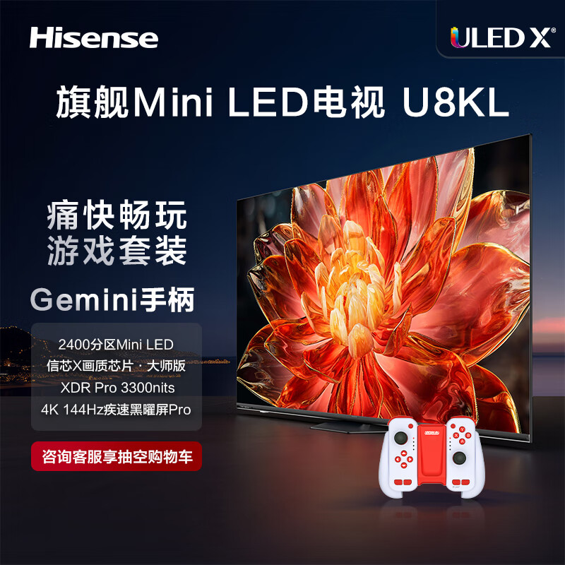 海信电视U8KL 85U8KL+运动加加Gemini分体手柄三合一体感交 85英寸液晶平板电视机 以旧换新价格:17398.00元!