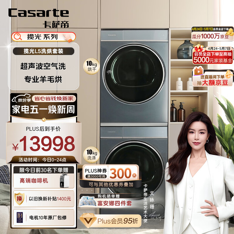 卡萨帝(Casarte)揽光L5洗烘套装 直驱滚筒洗衣机全自动+热泵烘干机 匀蒸烘 以旧换新 C1 D10L5ELU1+CGQ 10FL5EU1价格:14698.00元!