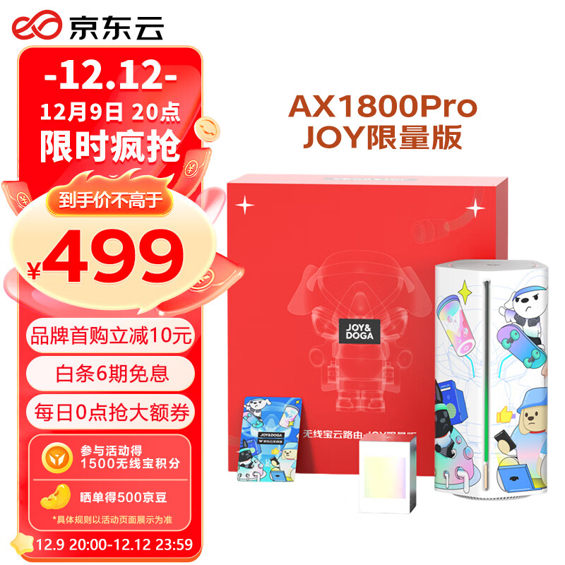 京东云无线宝 AX1800 Pro 128G JOY限量版盲盒 能赚京豆的路由器 年货礼盒 高通5核处理器 无线穿墙路由礼品价格:569.00元!