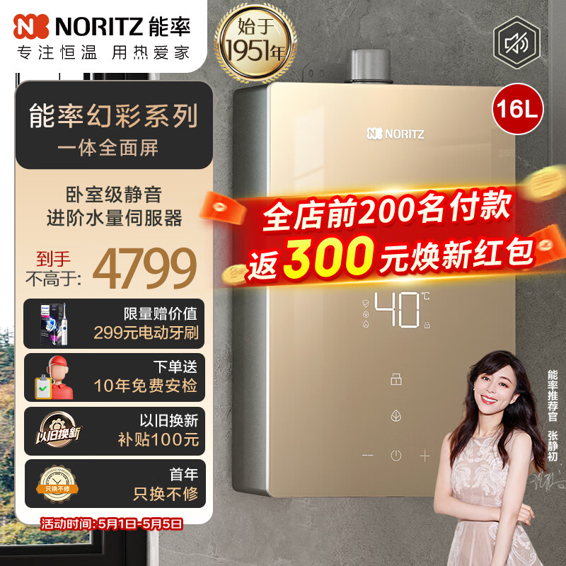 能率(NORITZ)16升燃气热水器天然气 玻璃屏 增压水伺服 一键节能 速热静音GQ-16EP5AFEX(JSQ31-EP5A)防冻价格:4799.00元!