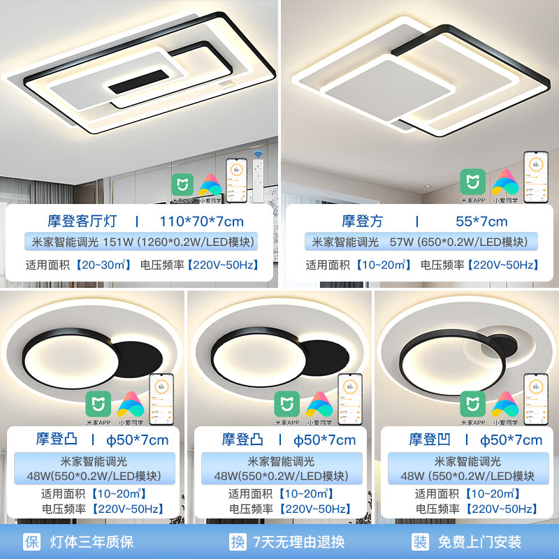 HD米家智能AI语音吸顶灯 led大客厅卧室全屋灯饰 包安装灯具套餐B价格:2399.00元!